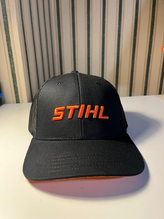 Gorra de la marca Stihl con un diseño moderno y llamativo. - Parte frontal negra con logo Stihl en naranja. - Malla trasera para mayor ventilación. - Cierre ajustable para un ajuste perfecto.
