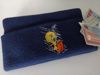 Gorro de lana azul con un divertido bordado de Piolín de Warner Bros. Es de los años 80, está sin estrenar y conserva tanto el certificado de garantia de producto oficial, como la etiqueta de precio en pesetas. - Diseño vintage. - Personaje: Piolín. - Licencia oficial Warner Bros.