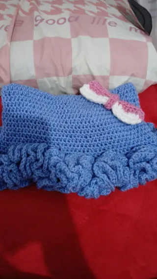 Precioso conjunto de crochet hecho a mano, ideal para todos. El diseño incluye un detalle de lazo. - Tejido de ganchillo. - Adorno de lazo.