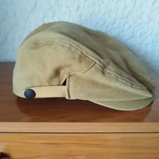 Gorra o boina de estilo " Newsboy" de lona, 100% algodón regulable con correa de cuero y corchetes, talla única, marca bordada para llevar del reves. Limpia, lavada en seco sin olores ni manchas. PVP 38,75€