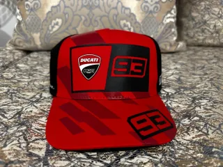 Gorra de estilo trucker con el número 93 de Marc Márquez y el logo de Ducati Corse. - Diseño a cuadros en rojo y negro. - Panel frontal con logo Ducati Corse. - Número 93 en grande en el lateral y visera.