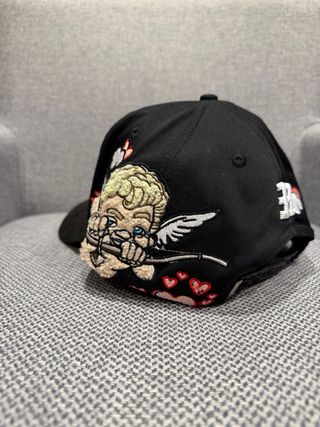 Gorra Premium negra bordada con ángel y corazones