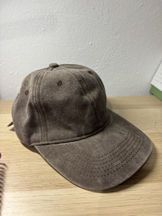 Gorra marron con un efecto como despintado. Un color de tendencia. Y se puede cambiar el ajuste.
