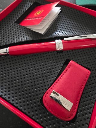 Conjunto de colección de Ferrari, ideal para los aficionados al automovilismo. - Gorra roja con el escudo de Ferrari. - Bolígrafo rojo con detalles plateados. - Llavero de cuero rojo con el logo de Ferrari. - Incluye caja de presentación. Entrego en mano en Madrid y envío. Tengo más cosas interesantes en mi perfil.