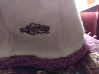 Gorro de polar suave y cálido, perfecto para mantenerte abrigado. Color crema con ribete en morado - Diseño con borde inferior en contraste. - Detalle bordado en la parte frontal.