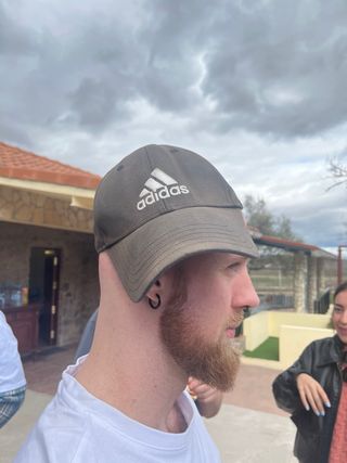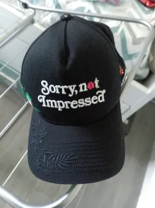 Gorra de estilo vintage con un diseño único. - Edición especial. - fue de color negro. *la persona no esta incluida en el precio.