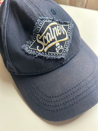 Gorra infantil de la marca Scalpers en color azul. Presenta un diseño con un parche frontal. Tiene un diámetro de 18-19 ctm - Parche con diseño de rombo y detalles bordados. - Borde del parche con acabado deshilachado.