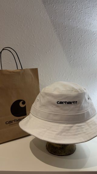Gorra tipo bucket de la marca Carhartt, con un diseño clásico y moderno. Perfecta para complementar cualquier atuendo. - Logo de la marca bordado en la parte frontal. - Costuras detalladas en la visera. - Material de algodón resistente. Es la talla M-L