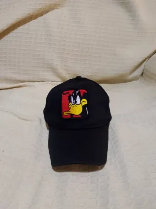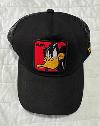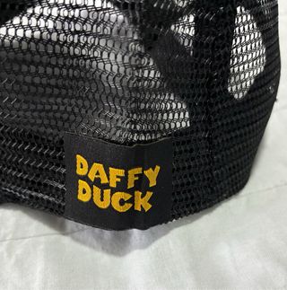 Gorra negra con diseño de Daffy Duck. - Parche frontal de Daffy Duck. - Malla en la parte trasera para ventilación. - Cierre ajustable.