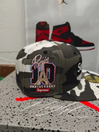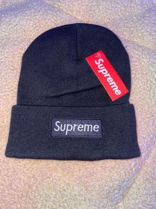 Gorra de la marca Supreme en color negro. Presenta el icónico logo de la marca. - Logo de Supreme en la parte frontal. - Etiqueta roja de la marca incluida.