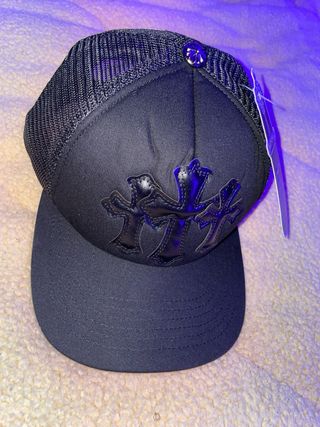 Gorra de la marca Chrome Hearts en color negro. - Diseño con múltiples cruces. - Detalle de malla en la parte trasera. - Botón decorativo en la parte superior. - Incluye etiqueta.