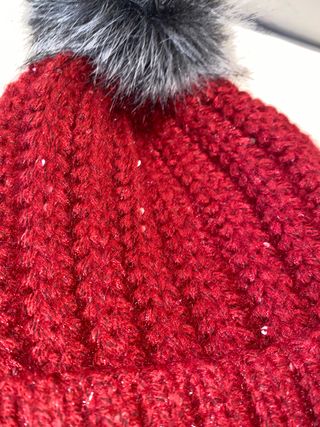 Gorro de punto con un pompón de pelo sintético desmontable. El tejido tiene un ligero brillo. - Pompón de pelo sintético. - Pompón desmontable. - Tejido con hilo brillante. - A estrenar
