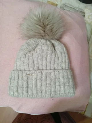 Gorro de lana suave y cálido con un pompón de pelo sintético. - Diseño tejido con textura. - Detalle de placa metálica en la vuelta.