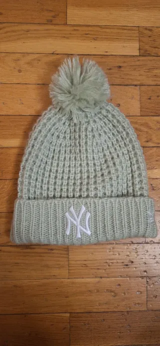 Gorro New Era punto pompón verde pastel