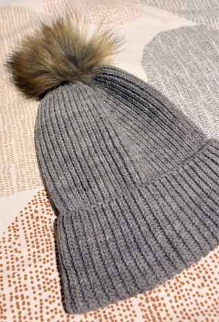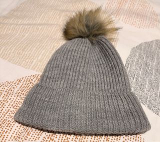 Gorro de lana con un pompón en la parte superior. Color gris