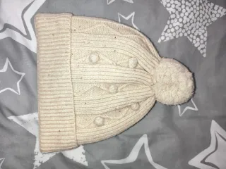 Gorro de punto con un diseño encantador. - Detalle de lentejuelas plateadas. - Adornado con pequeños pompones. - Acabado con un pompón grande en la parte superior.