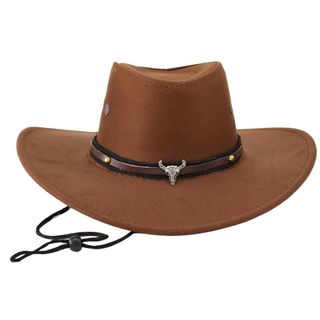 Sombrero cowboy Festival Vaquero S/M Sombrero Cowboy Fieltro marron Unisex | Tallas S/M (55-57cm) | Estilo Western Auténtico • Material Premium: Fieltro de lana marron oscuro sintético, duradero y cómodo. • Diseño Icónico: Sombrero vaquero clásico con banda decorativa y detalle metálico (cabeza de toro/estrella). • Unisex & Versátil: Ideal para hombre, mujer y adulto. • Ajuste Cómodo: Disponible en Talla S/M (55-57cm). • Multiusos: Perfecto para Rodeo, Baile Country, Festivales o uso diario. • Moda Española: Estilo Western y accesorios cowboy populares en España, Italia y Portugal.