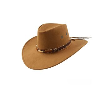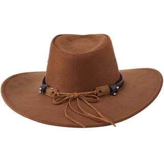 Sombrero estilo cowboy en talla M/L. para hombre mujer adulto - Material de ante. - Cinta decorativa alrededor de la copa. - Cordón ajustable en la barbilla. Unisex & Versátil: Ideal para hombre, mujer y adulto. Perfecto para festivales western, conciertos al aire libre, playa, viajes o como accesorio de moda diario. - Talla única que se ajusta de 58 a 59cm (equivalente a M/L). Tira ajustable. Material fuerte y resistente fieltro de lana color marron de excelente calidad. 48-72 hrs (España), Italia y Portugal antes de 4 dias laborables