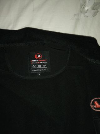 Sudadera de invierno Domyos con capucha. - Interior de pelo en color blanco - Medidas: hombros 46cm, largo 69cm. - Diseño en color negro. - Talla L.