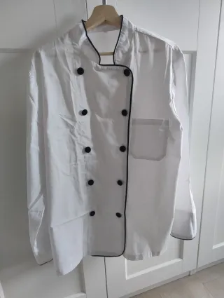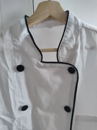 Disfraz de cocinero/a de tela. Casaca: Talla L Pantalones: Talla: 36 Regalo gorro. - Doble hilera de botones negros. - Cuello mao con ribete negro. - Bolsillo en el pecho. - Pantalones con bolsillos. SE ENTREGA EN BARAKALDO. Más disfraces y productos en mí perfil.