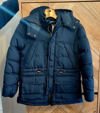 Chaquetón de invierno tipo parka con gorro. Diseño moderno y funcional. Esta nuevo porque me lo puse solo una vez. - Cierre de botones y cremallera. - Cintura ajustable. - Bolsillos frontales con solapa. - Puños de manga ajustables. - Gorro para quitar y poner - Me costo nuevo 149€