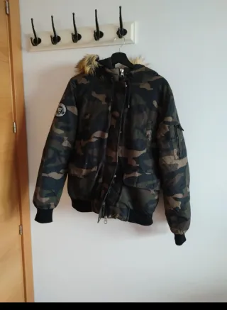 Chaqueta con estampado de camuflaje. - Diseño con capucha y pelo. - Bolsillos frontales. - Puños y cintura elásticos. - se les pueden quitar los pelos del gorro