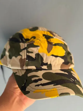 Gorra con estampado de camuflaje. - Diseño llamativo con colores verde, amarillo y beige. - Talla única ajustable.
