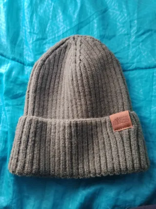Gorro de tejido grueso con etiqueta de la marca. - Diseño de punto acanalado. - Etiqueta de cuero con el logo de la marca.