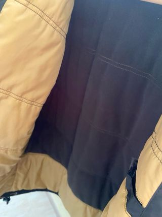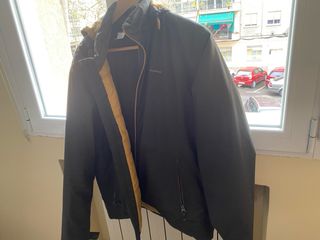 Esta bastante bien cuidada. Tiene gorro que se enrolla y guarda en el cuello.Dos bolsillos laterales con cremallera y uno interior con belcro( el belcro esta un poco despeluchado).Puños para poder ajustarlos con belcro. Medida de axila a axila 62 cm. PRECIO NO NEGOCIABLE.