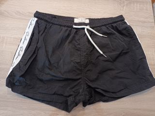 Bañador talla S ,en negro y linea blanca y gorra.