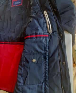 Chaqueta Sicab azul marino con muy poco uso, talla 16. Tiene un forro polar dentro con una cremallera que se puede quitar o poner según el frío. Aparte de los bolsillos normales que son con cremallera, tiene otros por dentro y broches en las mangas y en la parte trasera. El gorro también tiene la opción de recogerse como se ve en las fotos.