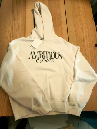 Sudadera con gorro de Bershka en color blanco. Presenta un diseño con texto AMBITIOUS Souls en la parte delantera. - Capucha ajustable. - Bolsillo tipo canguro.