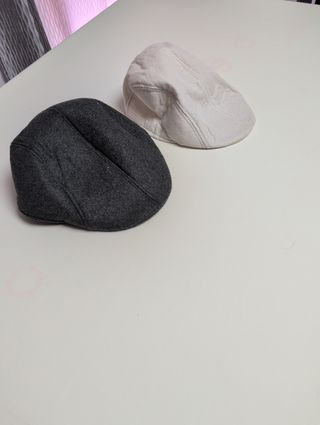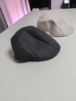 Conjunto de dos gorros de golf para hombre. - Un gorro de color negro. - Un gorro de color beige con rayas. -Ambos gorros están en perfectas condiciones. -Uno de invierno y otro de verano. -Sin marcas ni roces. -El precio es de 10 euros ambos, se pueden vender por separado a 5 euros cada uno. -NO localizo marca en ningún producto.