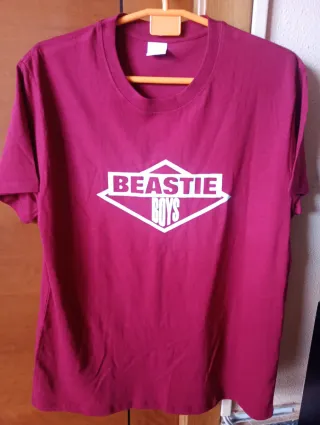Camiseta roja oscura/granate con estampado frontal del logo de los Beastie Boys, talla L Fabricada en algodón. Buena calidad y textura. Nueva a estrenar. Envío rápido. Tengo otras camisetas y gorros chulos en mi perfil