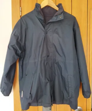 Chaqueta polar reversible de color azul. Chaqueta Polar Reversible e impermeable de la marca Result , tipo Slam, color azul oscuro. Talla júnior (12-14 años) Gorro escondido en el cuello. 2 bolsillos con cremallera por cada lado. Manga ajustada en muñeca. - Diseño reversible. - Cremallera frontal.