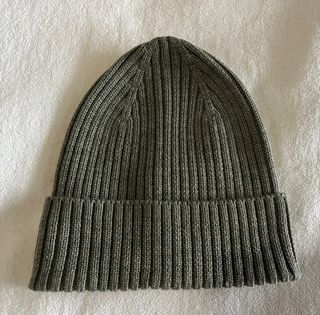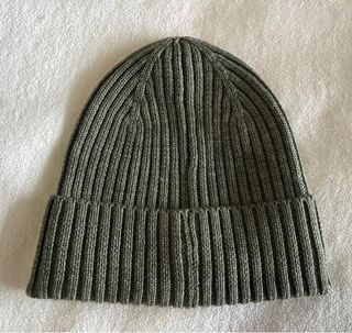 Gorro de lana en color caqui, ideal para mantener la cabeza abrigada. - Tejido de punto acanalado. - Dobladillo para mayor ajuste.