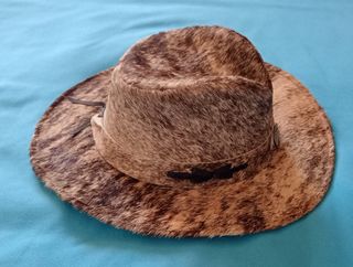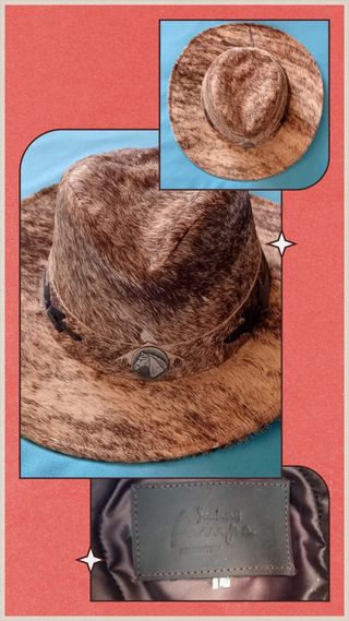 Sombrero estilo australiano o cowboy, - Material: Cuero Piel de vacuno - Cosido a mano. Artesanal - Sin usar. Con la etiqueta y el cartón interior , que garantiza su uso. Solo puesto para la foto. Es un regalo que no voy a usar