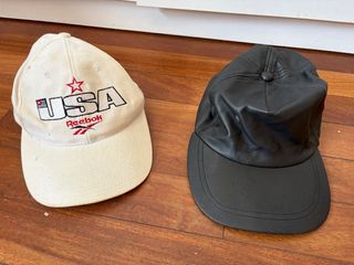 - Gorra Reebok blanca con detalles en rojo y azul --> 20€ edición Vintage del 96. - Gorra negra de apariencia de cuero--> 4,50€.