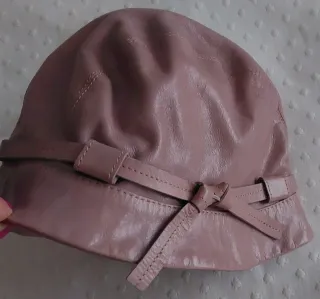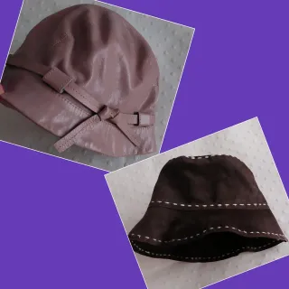 Gorro bucket sombrero de cuero con un diseño elegante mujer. Talla 56cm. Marca FUN & BASICS. Hecho en India. Material: 100% cuero auténtico. Forro 100% Algodón. Adorno de lazo. Color rosa chicle y marrón chocolate. 5€/ud.