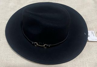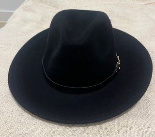 Elegante sombrero de lana en color negro, con un detalle de estribo dorado. - Material: Lana - Detalle: Tira de piel con Estribo metálico Dorado. - Cinta interior para ajustar la talla a la cabeza. *Hago envíos pero no por correos.