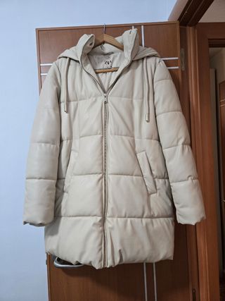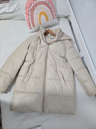 Abrigo acolchado zara efecto piel de mujer, con gorro. Es super abrigado. Talla S.