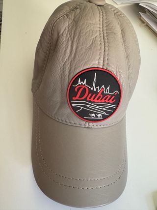 Vendo gorra de béisbol de cuero genuino. Es de color gris claro y tiene un parche con el diseño de la ciudad de Dubai. -Piel suave y de aspecto elegante. -Diseño único con parche de Dubai. -Perfecta para el día a día.