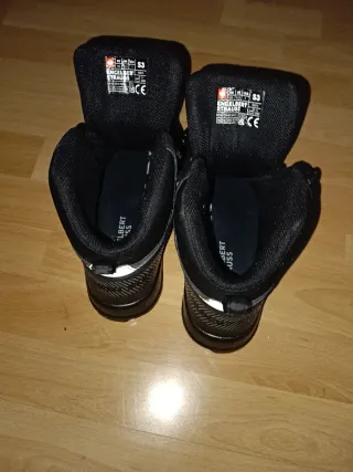 Botas de seguridad Strauss S3 es Katavi mid Utilizadas durante dos semanas. EN ISO 20345:2022 S3 con puntera de acero y entresuela de acero Material superior de piel de vacuno resistente y de fácil cuidado. Forro interior de malla transpirable con refuerzo de microfibra en el talón. Gorra protectora de poliuretano, ideal para trabajar de rodillas. Correa y cuello agradablemente acolchados de malla transpirable. Refuerzos de TPU en zonas de gran desgaste y estabilizador del talón para una mayor sujeción. Elemento reflectante en el talón La suciedad no puede penetrar gracias al diseño de lengüeta cerrada. Plantilla anatómica extraíble