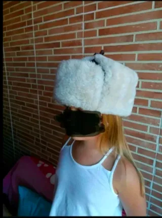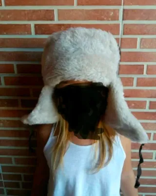 Gorro de estilo ruso Ushanka, para protegerse del frío. Talla 60. Circunferencia interior ~ 57 cm. Fabricada en el año 2010. Puede utilizarse para rodajes o películas. Tiene desgastes en los laterales, al ser pelo natural, se ha ido pelando con el tiempo. Circunferencia interior 57 cm. - Forro interior de tela. - Diseño con orejeras cosidas hacia arriba.