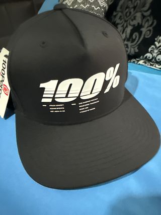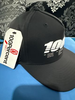 Gorra negra de la marca 100% con diseño moderno. - Ajustable. - Diseño 100% - ITRACK CONCEPT RACING SPECIFIC - ONE HUNDRED PERCENT REGISTERED TRADEMARK - A BADGE OF HONOR