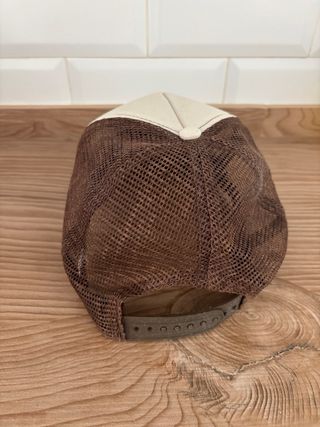 Gorra estilo trucker con un diseño de paisaje tropical bordado en la parte frontal. - Parche con palmeras, montañas y sol. - Inscripción THE WAVES ARE CALLING bordada. - Malla trasera para ventilación.