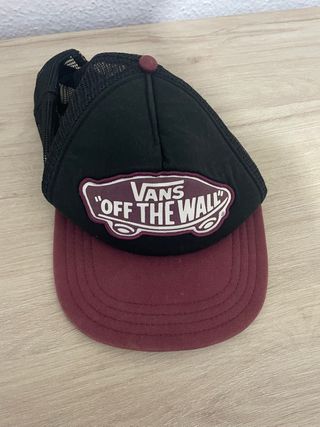 Gorra estilo trucker de la marca Vans. - Paneles frontales negros. - Visera y parte trasera en color burdeos. - Logo de Vans Off The Wall en el frontal.