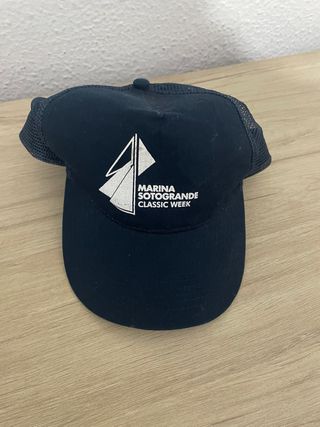 Gorra de béisbol con diseño de vela. - Parte trasera de malla. - Logo de Marina Sotogrande Classic Week en blanco.