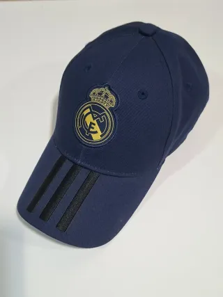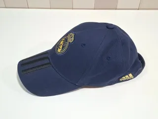 Gorra con el escudo del Real Madrid y las tres rayas de Adidas. - Diseño en color azul marino. - Detalles dorados del escudo.