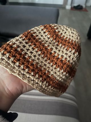 Gorra tejida a mano con un diseño de rayas. - Hecha con hilo de calidad. - Diseño unisex.